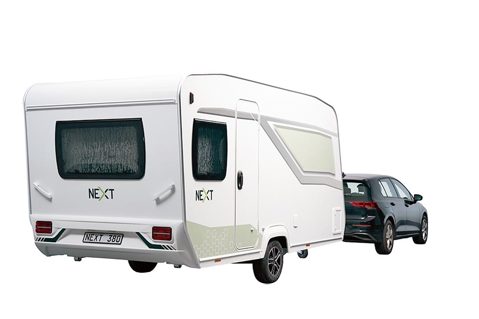 Next er et helt nytt campingvognmerke, lansert nå i mars. Det er Fendt som står bak, og nysatsing er gjort for å ruste seg for nye tider, kan produsenten fortelle. Først og fremst handler det om å nå en yngre generasjon med en tydelig ung og frisk profil, og å tilfredstille vektkravene til elbiler.