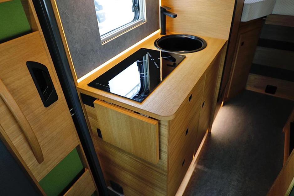Testbilen har en Truma Saphir Comfort SC, som er en stillegående, helelektrisk varmepumpe som går på strømnettet og både kan varme og kjøle kjøretøyet. På kjøkkenet finner du en elektrisk induksjonskoketopp.