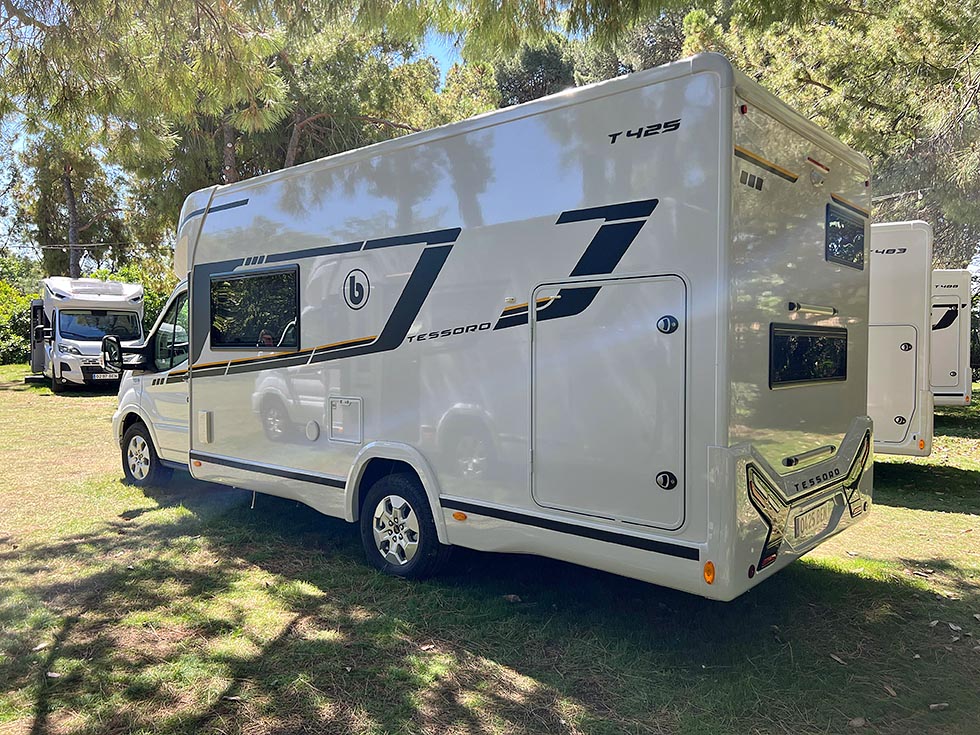 Benimar Tessoro 425 er en halvintegrert bobil på Ford-chassis som byr på hele seks sitteplasser. Og minst like mange soveplasser. Men i Norge vil modellen ikke bli godkjent for flere enn fem.