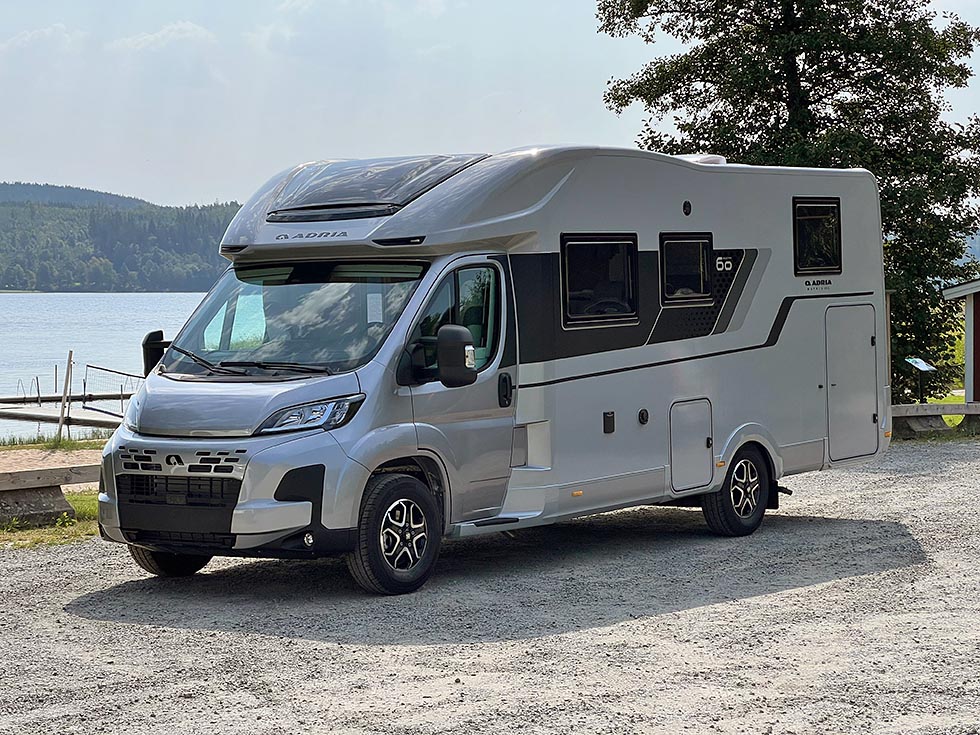 Tenhult, Sverige: Adria gjør det bra i Norge for tiden, med gode markedsandeler. Det slovenske selskapet har lenge hatt et tett forhold til Skandinavia, som pleies via agentselskapet i Sverige. En stor satsing for 2026-sesongen er 60 Year Selection-utgavene. Fire av de mest populære modellene i hver serie er generøst utstyrt, med ny møbeldekor og en attraktiv prislapp. Det er snakk om Coral 670 DL 60Y (enkeltsenger og sidesittere), Matrix 670 SL 60Y (senkeseng, enkeltsenger og vinkeldinette, Compact DL 60Y (smal modell med enkeltsenger og sidesittere) og Twin 640 SLB 60Y (bybobil med enkeltsenger).