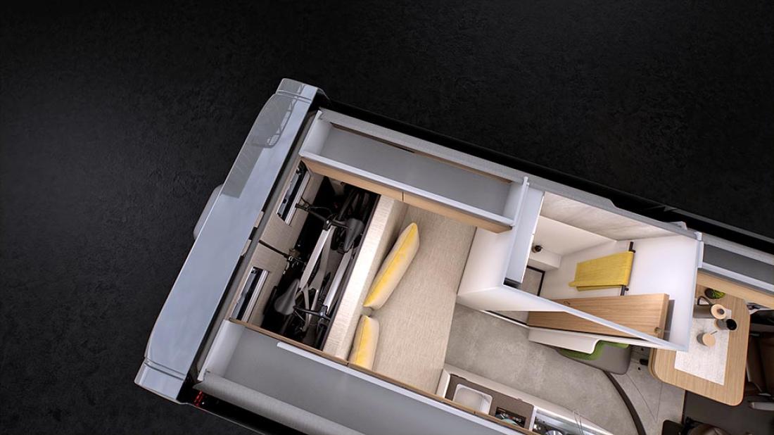 Retter seg mot det lojale segmentet av halvintegrerte bobileiere, og tilbyr maksimal fleksibilitet. Patentert 90-graders roterbar sofa, et uttrekkbart sidebord mellom kjøkken og soverom, stor 143-liters kompressorkjøleskuff, og kjøkkenløsning med to uttrekkbare seksjoner. Et senkesengalternativ forsvinner nesten usynlig opp i taket. Filtoverflater og det samme dekor- og tekstilutvalget som i Habiton gir stor individuell frihet, selv om planløsningen kun tilbys med enkeltsenger eller frittstående dobbeltseng.