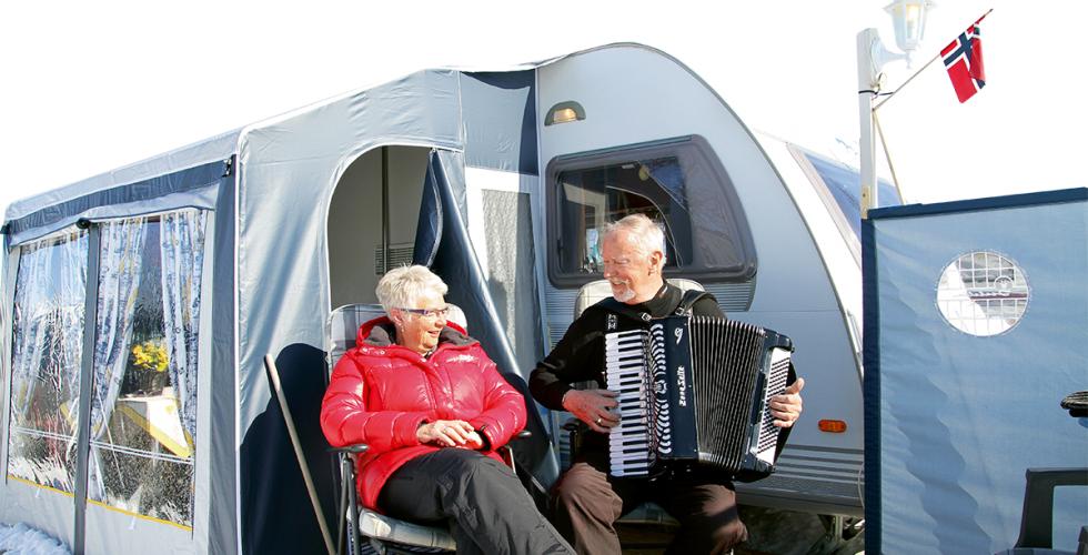 Tett på Camping- og trekkspillfantast Arne Eggen spiller gjerne opp til en trall på Stugudal camping.