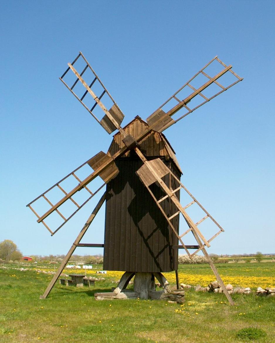 Vi tar igjen en pause. Denne gang ved Lerkaka, der noen av Ølands best bevarte møller står. På midten av 1800-tallet var det ca. 3000 av dem. Stort sett alle gårdene hadde sin egen. I dag er det ca. 300 igjen, men det er fremdeles den største samling av gamle møller nord for Holland. Det spesielle ved møllene er at hele stammen eller huset om man vil, kan dreies, i motsetning til møllene i Holland, der det kun er møllehatten, som kan dreies. I gresset under møllene finner jeg noen blå orkideer. Den vakre blomsten, som vokser i tusentall ute på Alvaret, men bare litt senere på året.