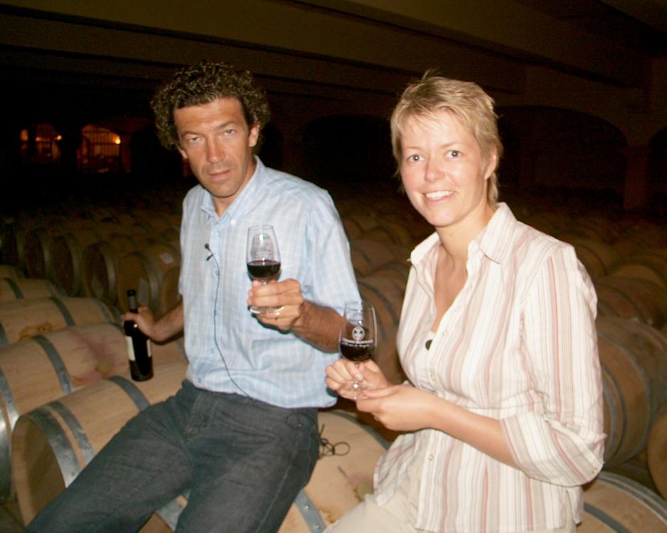 Mr. Bertrand inviterer oss med ned i vinkjelleren, der 4.000 eiketrefat med vin ligger og lagres. Det er et flott syn. Vi smaker på flere forskjellige viner og de er gode. Det er tydelig at han vet hva han snakker om, og at han har sans for kvalitet. Området og vingården er meget velholdte med smak for den gode stil. Rasmus, som elsker vin og har litt peiling på det, er i ferd med å kjøpe hele butikken…. Vi får imidlertid ordnet det slik at vinen sendes hjem til oss, for vi vil ikke ha unødige kilo i campingvognen, før vi er kommet over Pyreneene. Det skal vise seg å være en klok beslutning.