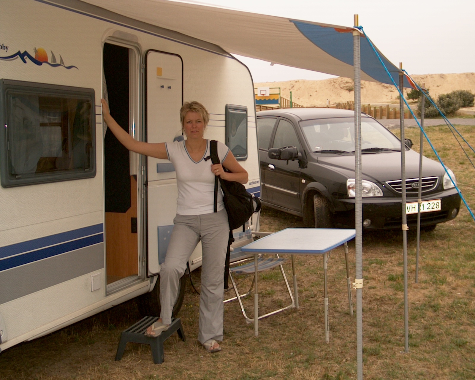 Vi kjørte i en Kia Carens CRDI 2,0 diesel, som trakk veldig bra. Kias hjemmeside: www.kia.no Se dieselforbruk under faktaopplysninger. Campingvognen var en Hobby Excellent Easy UFe med dobbeltseng, kjøkken, badeværelse og sittegruppe. Solseil fra Isabella. Les mer her www.isabella.net Sykkelen er av merket Mosquito XPlicit. Les mer på www.mosquito.dk