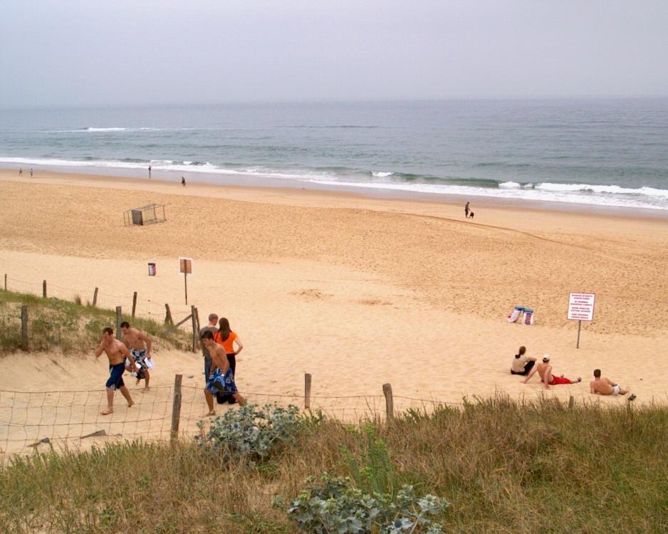 Det er desverre ikke tillatt å bade pga. kraftig understrøm, selv om det ville være helt opplagt i denne varmen. Sandstranden er bred og når så langt øyet rekker. Det er et ideelt sted å fiske og mange står med sine kraftige havfiskestenger og prøver lykken. Det er egentlig utrolig få mennesker på stranden, kanskje pga. tidspunktet, men likevel. Jeg snakker med en fisker, som forteller, at franskmennene først kommer veldig sent på formiddagen, dersom de kommer i det hele tatt. Det er et av de få stedene, der man kan få det enorme Atlanterhavet litt for seg selv. Deilig.