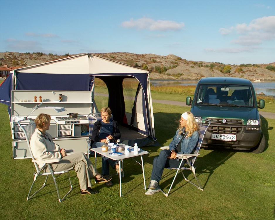 Jeg pakket Combi Campen och diverse ferierekvisita för en ukes ferie og så med glede fram mot den forestående opplevelsen. I Gøteborg ventet Susanne sammen med sin venninne Ane-Elise og det var lagt opp til en toppreise oss jenter imellom. Vi begynte vår reise med å kjøre til Orust, som ligger ca. 1 time nord for Gøteborg. Presis utenför øyas største by, Ellös sjekket vi inn på Stocken Camping. På noen få minutter er vårt hjem klart til innflytting og vi bor på første parkett helt ned til havet, og med den vakre svenske skjærgården tett inntil. Rett i nærheten ligger Handelsman Flink, der vi spiser vårt første måltid, bestående av laksefilet med smørkokte grønnsaker og ferske poteter. Det smakar fantastiskt godt. Selv nå har vi utsikt över havet. I tillegg til at det er et fint sted å spise på, har det en spennende historie da det har fungert som handelsted for hele området. Sammen med restauranten ligger en mindre gammeldags handelsbod med hjemmelaget honning, karameller och karamelliserte epler. Men også prospektkort, skilter og gamle kakebokser. Utenfor sitter en spillemann som spiller og synger Evert Taube-viser til minne om at han ofte besøkte dette stedet. Det kan nesten ikke bli mer svenskt. Bortsett fra at maten overrasket.....