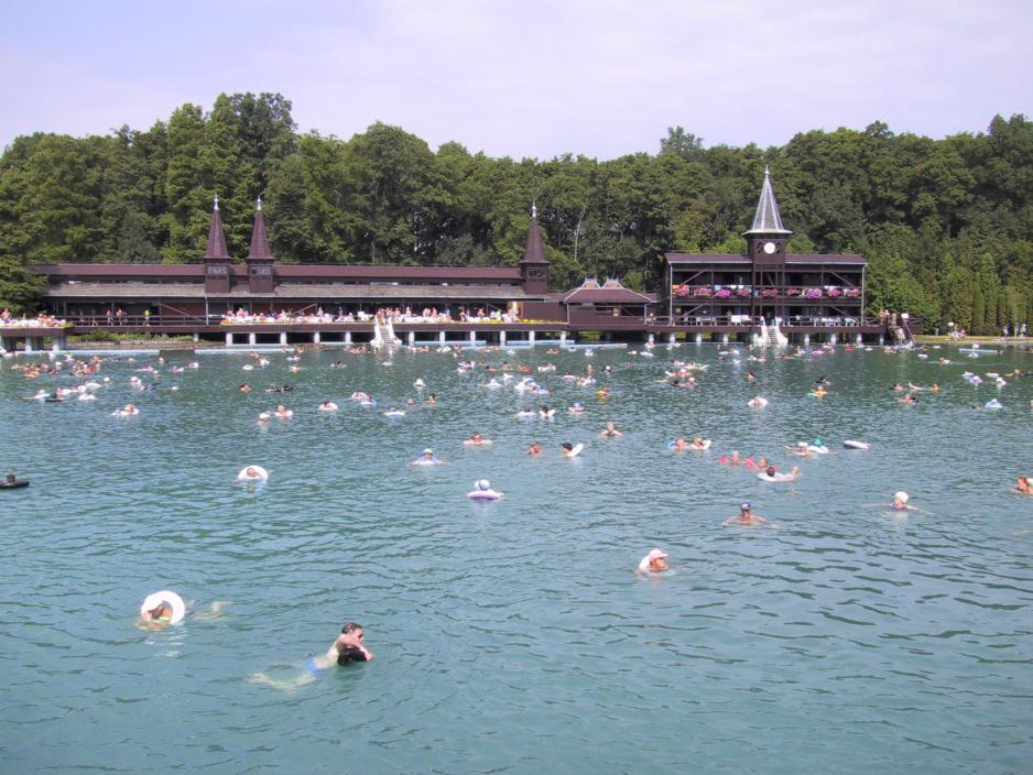 Denne dagen står i avslappningens tegn. Vi skal utelukkende pleie våre kropper. Termalsjøen i Hévic, som ligger sek km. nordvest for Keszthely, er Europas største og en av Ungarns mest kjente. Den store sjøen er fylt med hvite og røde lotusblomster. Fra en kilde 39 meter under overflaten utspringer 39.000 liter svovl- og radiumholdigt vann pr. minut, som betyder, at vannet i sjøen utskiftes hver annet døgn. Om sommeren er vannet 35 grader varmt og om vinteren er det 27 grader varmt. Sjøen er ikke en man bader i som sådan. De fleste ”henger” i en badering og slapper av. I virkeligheten ser det veldig komisk ut med alle disse menneskene, som ”ligger” i vannoverflaten, men det er optimal avslappning for kroppen.