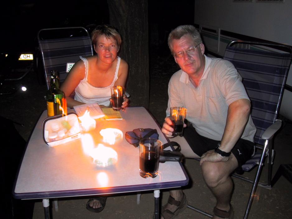 Campingplassen ligger like ned til vannet, og har alt hva du i prinsippet skal bruke på en ferie. Det er lekeplasser, svømmebasseng, aktivitetsområder, butikk, boder og best av alt en hel restaurantgate, hvor du for meget rimelige priser kan få slukke sulten etter magens helt individuelle ønsker. F.eks. koster en wienerschnitzel med poteter og saus omkring 35 kr. Som hovedrett bestiller vi gryterett, som en en en kraftig og fantastisk velsmakende gullasch. Desserten blir en liten beskjeden kaloriebombe ”gundel palacsinta”, som betår av tynne pannekaker flambert i Armagnac med varm sjokolade over. Det ungarske kjøkken har hentet sin inpirasjon over hele verden. Paprika er et av de viktigste ingredienser og de fås fra søte til ektremt ”hotte”. Maten tar både lang tid å tilberede, og spise for det er rikelig av den. Deilig.