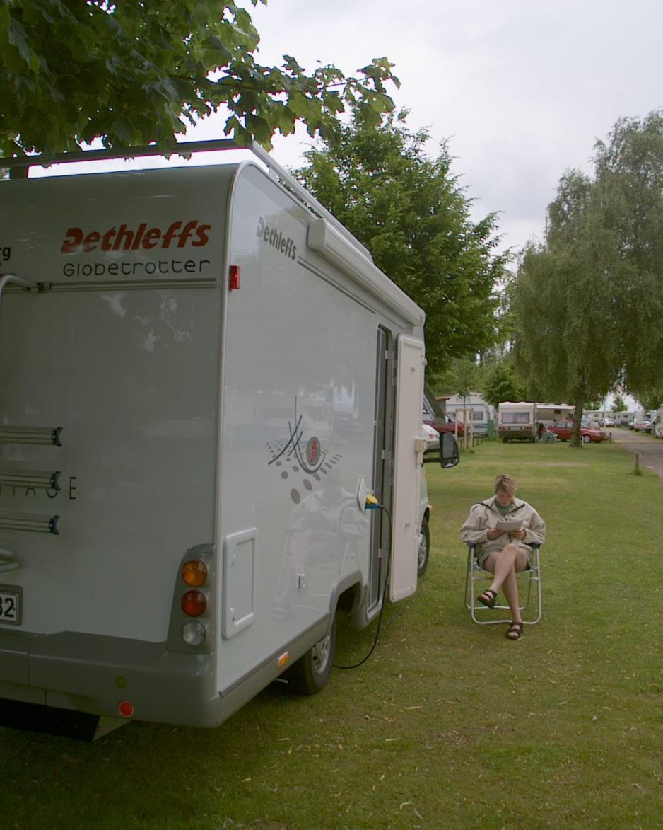 har ikke så mange langliggere og har derfor en del plasser, som ligger helt nede ved vannet. Det er heller ikke så mange trær, så selv om man ligger i tredje rekke kan man fortsatt se vannet. Fine fasiliteter og miljøvennlig søppelhåndtering. Til gjengjeld har plassen et gammelt polett-system, der man kun kan legge på en mynt om gangen, og den holder ikke natten over, hvis man har en forholdsvis stor campingvogn med lamper og f.eks. et kjøleskap, som står på hele natten. Da er strømmen gått neste morgen. Det er imidlertid et mindre problem, som det går an å leve med. Det er 5-10 minutters gange inn til byen, som er riktig hyggelig med mange gode kafeer. Du kan også reise med båt, som trafikkerer sjøen på kryss og tvers. Les mer om Überlingen m.m. her: www.uberlingen.de