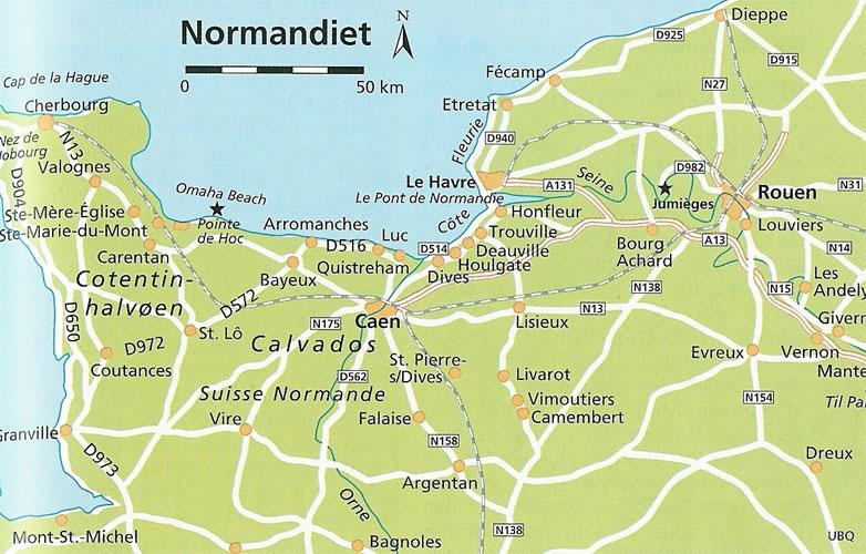 Ved Honfleur: Le Phare 2-stjerners plass vest for byen på vei Deauville. Åpen fra påske til september. Ved Bayeux: Camping du Chateau de Martragny 4 stjerners plass øst for Bayeux på vei RN 13. Åpent fra mai til september. Email: charteau.martragny@wanadoo.fr Ved Le Mont St-Michel: Camping Haliotis Mont Saint Michel 3-stjerners plass i byen Pontorson 9 km syd for Le Mont St-Michel Åpen fra mars til november. på www.camping-haliotis-mont-saint-michel.com Camping Cheques kan benyttes utenom høysesongen (medio juli-medio august). Se også www.campingcheque.dk