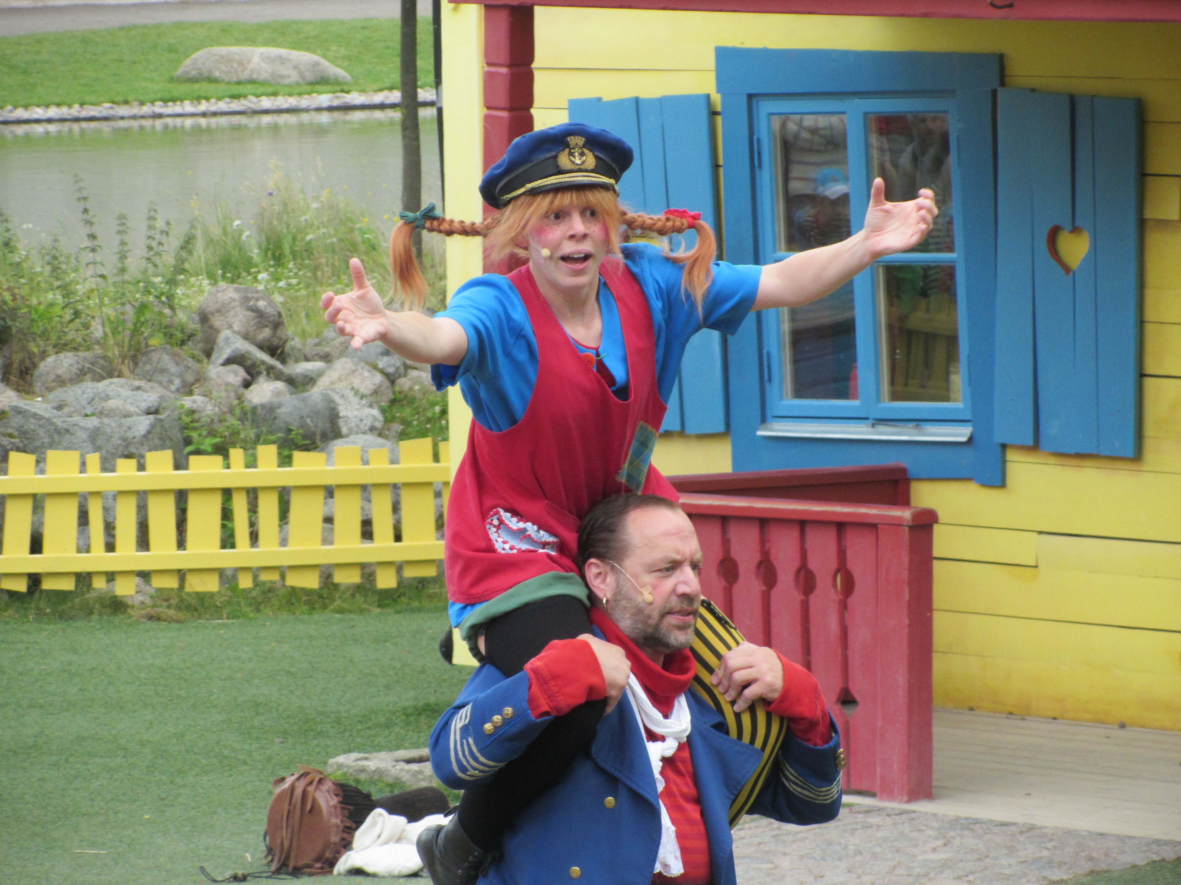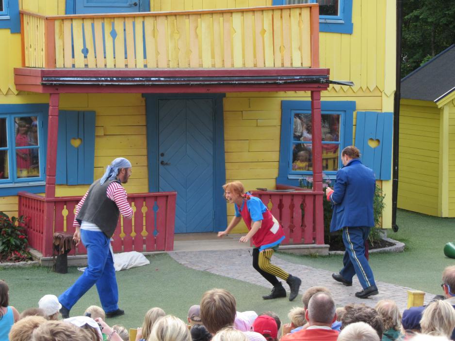 Uansett hvilket Pippi show man velger å se, så er det utrolig underholdende. Det blir sunget og mimikken er også på topp, så selv om man ikke forstår alt som blir sagt, så er det en opplevelse. Det er også gjort mye ut av scenene, noe som spesielt er imponerende, når Pippis far kommer hjem med båt. Alle husker også scenen, der Pippi løfter hesten sin, så Kling og Klang blir redde. Selvfølgelig kan alle også gjenkjenne Hr. Nilsson og Frk. Prysselius. Det morsomme med denne figuren, er at hun ble til i forbindelse med TV-serien fra 1969. Ikke desto mindre er hun med på å gi historien enda mer karakter. Pippi gjør jo alt annerledes og jeg har ofte tenkt på, hvordan hun får sine fletter til å stå rett ut i luften? - Sukkerdrikke og absolutt ingen balsam, svarer Pippi kjekt. Det herlige ved de forskjellige miljøene inkl. det her ved Pippi er, at når skuespillet er slutt, blir skuespillerne igjen og hilser på tilskuerne og man kan gå rundt i kulissene. Det er spesielt populært her ved Villa Villekulla, der Pippi holder til.
