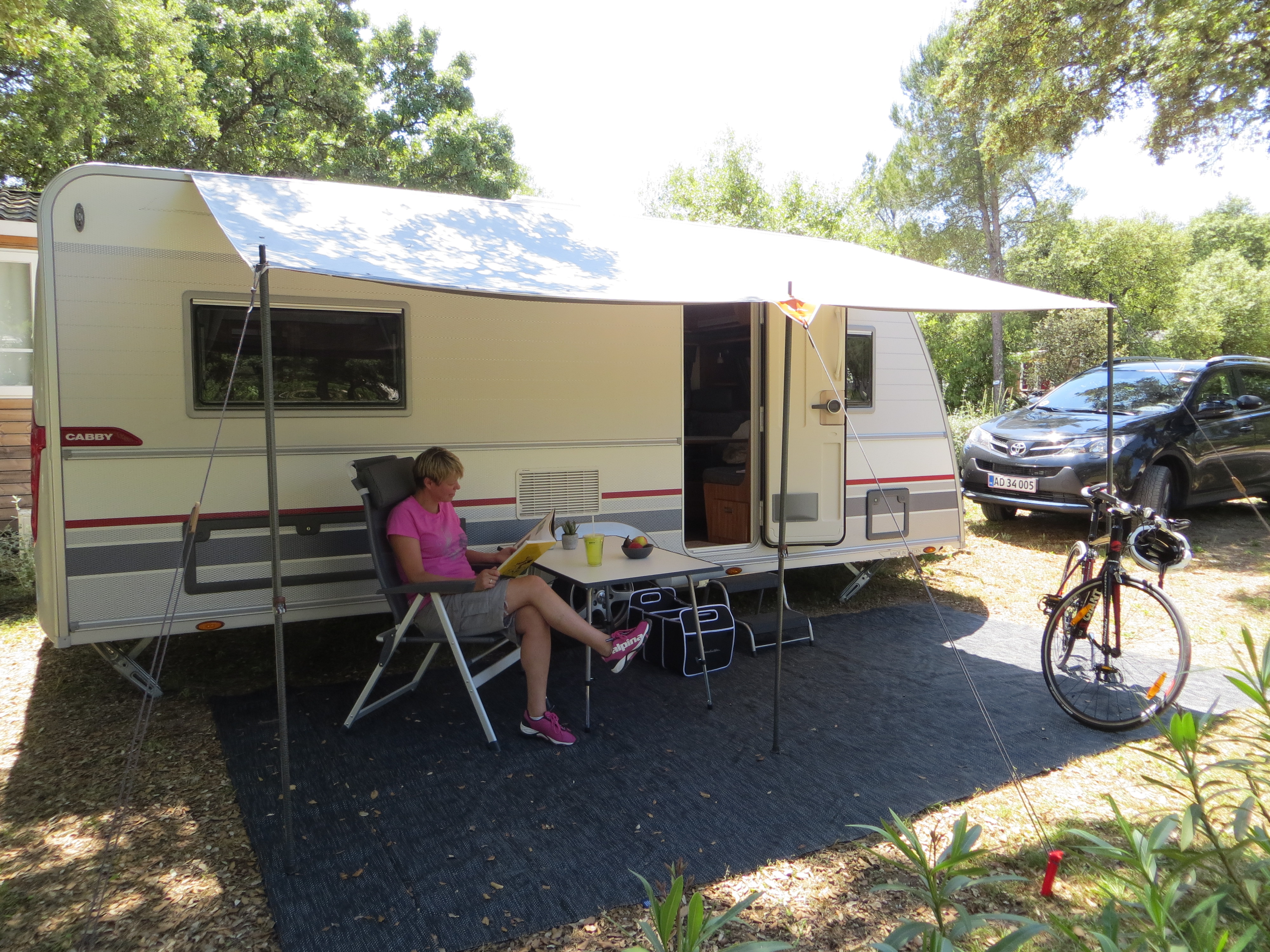 Jeg er her med egen campingvogn, men på Camping Massereau kan du bo på flere forskjellige måter for du kan også leie hytter og mobilhomes, så det kan anbefales å ta et par dagers opphold her på vei til f.eks. Spania. Felles for alle overnattingsenhetene er, at man bor midt i en stor åpen skog – virkelig hyggelig.