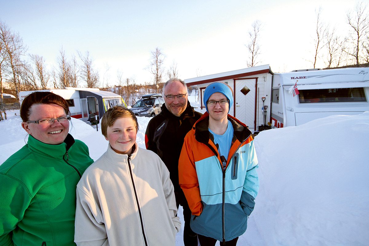 For Irene og Ragnar er det viktig at barna Anders (15) og Vegard (12) er med på campingturene på vinteren. Omtrent hver annen helg kjører familien de drøye ti milene mellom hjemplassen Stjørdal og Stugudal. I tillegg benyttes vinter- og påskeferien i campingvognen. – Barna sover i den minste vognen, men de benytter den også til å se TV hvis vi ønsker fred til å lese og slappe av i den store. Den minste vognen er like mye i bruk som den store, med unntak av hvis jeg og Vegard tar en tur alene en helg. Da oppholder vi oss naturlig nok i den største, sier Ragnar. Fleksibilitet er blitt et nøkkelord for Sæbø. Med to vogner står både barn og foreldre mye friere til å velge. – Hvis barna vil ha med en kompis, er det nå helt uproblemtisk og dessuten artigere for dem. Ragnar har ordnet det slik at TV-koblingen kan flyttes mellom vognene, slik at barna kan se TV der. – Vi ser lite TV, og da er det greit at barna i fred og ro kan titte mens vi gjør noe annet. Likevel er det slik at familien som oftest er samlet i spikerteltet. Tenåringer sitter gjerne lengre oppe om kveldene, og sover også lenger om morgenene. Med egen vogn styrer de dette selv. Stugudal har to campingplasser med mange titalls fastliggere, men er også kjent som et yndet sted for hyttefolk. Hele tusen hytter finnes i den lille bygda. – Vi har snakket om å bygge hytte, men synes det har vært for dyrt. Slik vi har fått det nå fungerer det like bra med campingvogner, sier Ragnar.