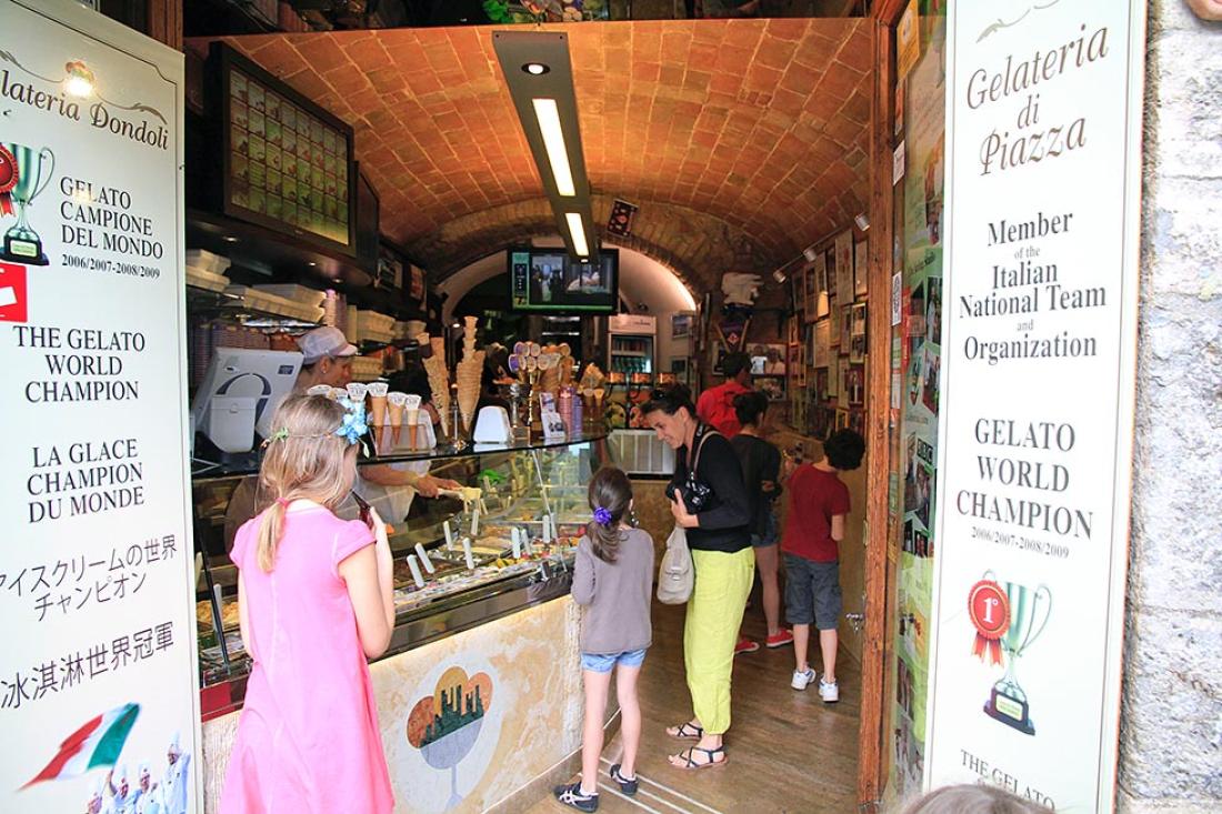 Vår reise startet for alvor i middelalderlandsbyen som typisk nok ligger på en høyde i et kupert terreng. De høye steinhusene ligger på typisk italiensk vis vegg i vegg, og gir svalende skygge til de smale gatene på sommerstid. Torget er intimt og sjarmerende og et naturlig sted å ta seg en pause på. Du får det som påstås å være ”verdens beste” is to steder, og hva passer vel bedre til en ekte italiensk espresso på kafeen? Byen er kjent som tårn-byen, og den spesielle byggeskikken har sin bakgrunn i krig og urolige tider på 1200-tallet. Det å ha et høyt tårnhus ga økt beskyttelse. De velstående familiene knivet seg imellom om å ha det høyeste tårnet, og på det meste hadde byen over 72 tårn, hvor de høyeste var hele 70 meter høye. Til slutt ble det vedtatt at ingen fikk bygge tårn høyere enn tårnet i Palazzo Comunale (kommunepalasset). Når en familie led nederlag i interne stridigheter eller en familie gikk konkurs, ble tårnet deres revet. I dag er det 14 gjenværende tårn. Bysentrumet står på Unescos verdensarvliste.