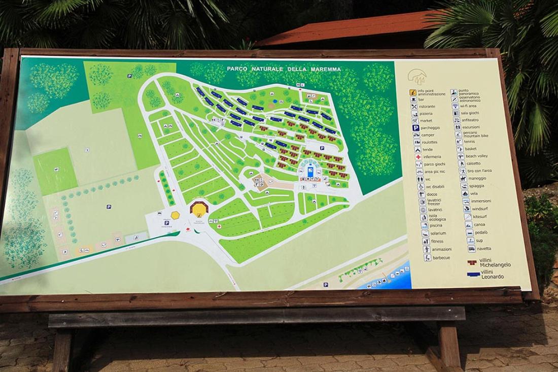 Mens de fleste campingplassene i området ligger på rekke og rad, skiller denne plassen seg ut med sine rolige omgivelser. Selve campingplassen har det som trengs, og litt til. Den skiller seg lite ut fra en gjennomsnittlig italiensk campingplass på fasiliteter, hvor det jo er en generelt høy standard. Gode sanitære fasiliteter, spisesteder, butikk og et svømmebasseng finnes på plassen. Foruten å tilby plasser til bobiler og campingvogner leies det ut mange ulike typer leiligheter og telt. Det er ballbaner for fotball, tennis, volleyball, lekeområder for barna, riding, utsiktpunkt med kikkert med mer.