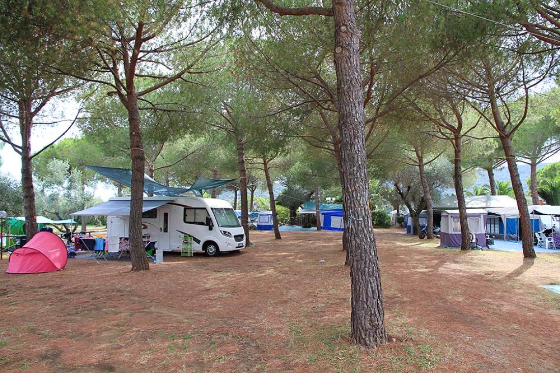 Plasseringen gir naturlig le for vinden, og området har godt med trær som gir behagelig skygge - også på plassene for vogner og bobiler. Det er lite trafikk i området da veien som går forbi kun går til Talamone, og så er det full stopp. Campingplassen har en egen strand som ligger inntil Talamone Wind Beach. Denne er kun for campingplassens gjester, og er en kunstig oppbygget plass hvor det er svært langgrunt. Flott for barn, men vi vil heller anbefale å ta turen til badeplassen i selve Talamone, som er innen rekkevidde til fots. Skal du bade i italienske svømmebasseng må du nesten uten unntak bruke badehette. Greit å vite når du pakker til turen. Ønsker du deg en enklere og rimeligere plass å stå i dette flotte området, så er Talamano Wind Beach et alternativ.