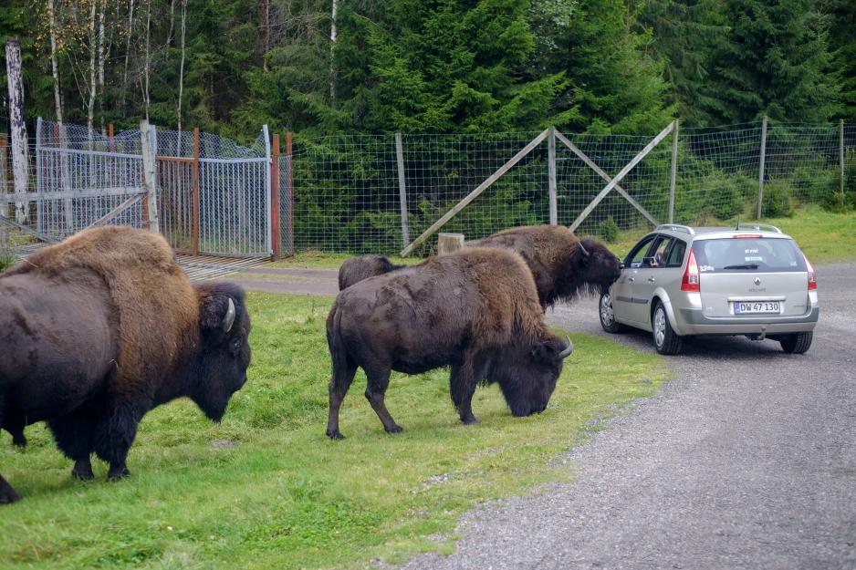 I parken er det også et eget område hvor en kan oppleve amerikansk bison. En bison kan bli to meter høy, tre meter lang og veier opp mot 1000 kg. Bison er av de største oksedyrene i verden. På begynnelsen av 1800-tallet var det 60 millioner bison i Nord-Amerika, men en voldsom jakt på dyrene gjennom 1800-tallet førte til at det i 1890 var under 800 dyr igjen. Takket være flere private initiativ er arten reddet fra utryddelse. I dag blir bison holdt for deres kjøtt og skinn - eller de holdes i parker, som her på Smålandet. En kommer tett på dyrene, og de ser ikke ut til å bry seg om bilene som kjører sakte inn på deres område. De flytter seg ikke for bilene, så her må en være tålmodig.
