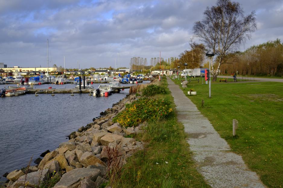 Bobilparkeringen ligger i en småbåthavn som har 450 båtplasser og 87 små hytter som hører til båtplassene. Hele plassen er inngjerdet og overvåkes av et vaktselskap tre ganger i døgnet.