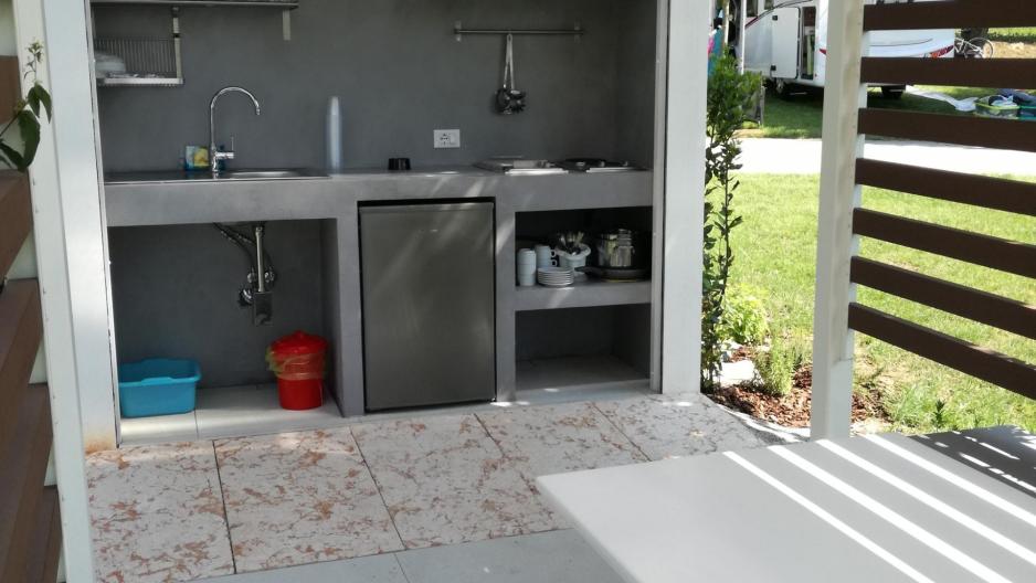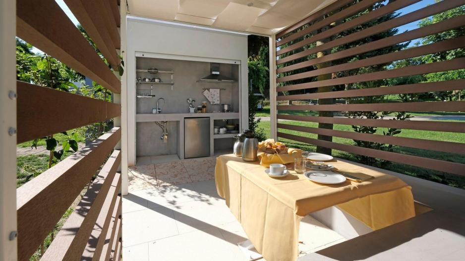 Enkelt og innbydende: Spiseplass og kjøkken i skyggen er kjærkomment i Italia sommerstid.
