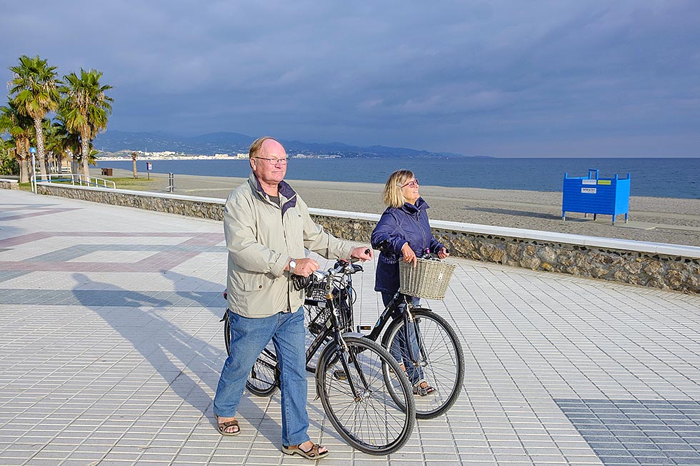 Klimaet opplever ekteparet som lunere enn lengre nord. På grunn av fjellene er det mer vind i Albir, som ligger nord for Alicante. Her er de to ute hele dagen, og Anne Grethe går på treningssenter tre ganger i uken.
