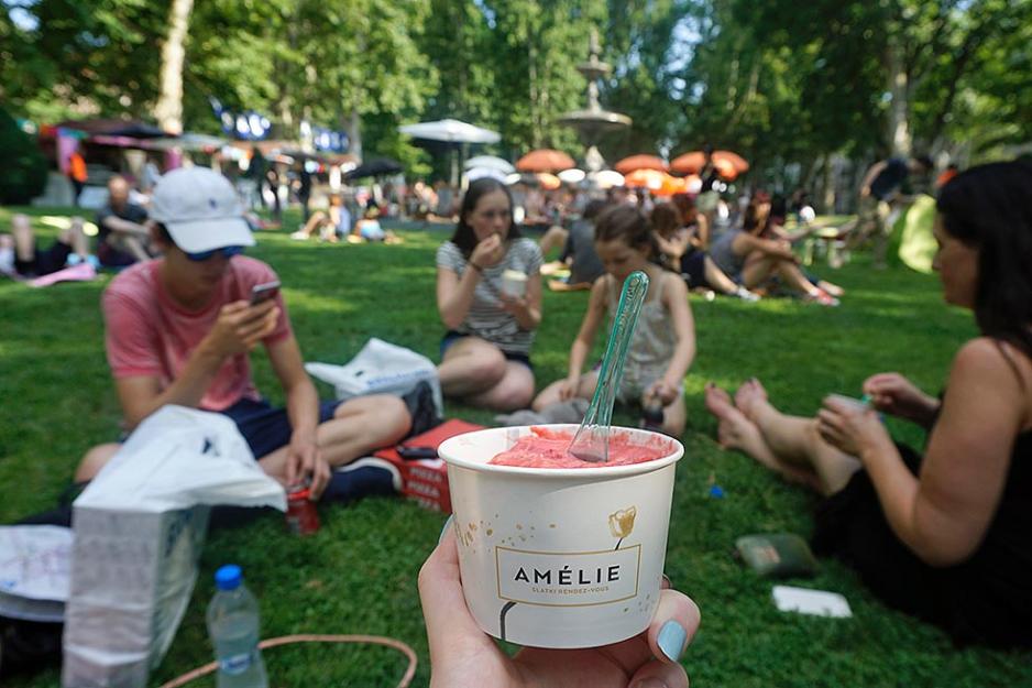 Zagreb er delt i to: Øvre og nedre bydel. Den nedre bydelen ligger rundt en park som ligger midt i hovedgata. Zrinjevac, som parken heter, bidrar til byens avslappede atmosfære. Her er det til enhver tid mulighet for å sette seg i gresset og spise en is. Vi tilbrakte mye av vår tid i Zagreb med å gjøre akkurat dette. Her var det folk og musikk, og god stemning. Den helgen vi var i byen var parken base for en festival, og det gjorde ikke stemningen noe dårligere!