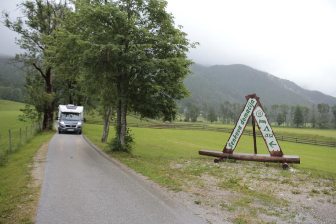 Da vi var i grottene Skocjanske Jame overnattet vi hos Emilijana Lipovšek på campingplassen Dujčeva domačija (N 45.6553°, E 14.024911°). På den store plassen med elven rundt var det god plass, stille og rolig i begynnelsen av juli.