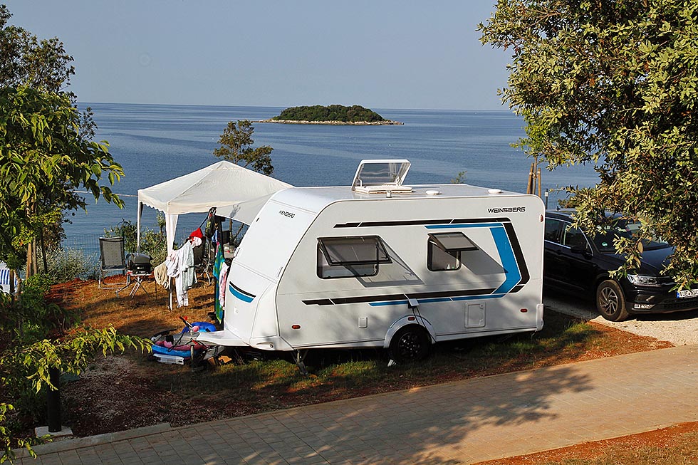 Istra Premium Camping Resort var helt nyåpnet da vi besøkte plassen i slutten av juni 2019. Likevel var alt av infrastruktur, gress og planter allerede på plass. Campingen ligger på en egen halvøy som stikker ut i havet. Utsikten fra de ytterste plassene er helt magisk.