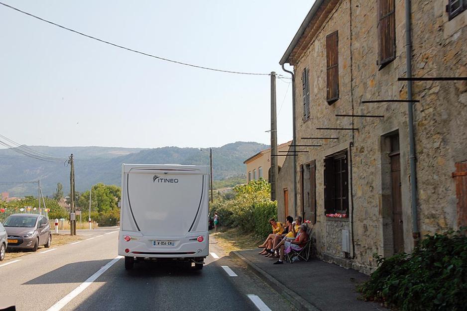 AUBENAS: Det er varmt og tørt, men ikke verre enn at de fleste vil definere det som behagelig sommervarme. Vi er to bobiler med to norske familier som kjører etter hverandre på landlige franske veier. Veistandarden og trafikken kan sammenlignes med en typisk norsk landevei. Det er ikke spesielt mye trafikk.