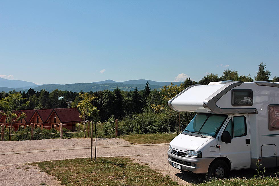 Bra for aktive. Flotte sanitæranlegg. Fine romslige plasser. Grei plassering for å utforske innlandet med elver og Plitvice. Ikke spesielt imponerende mat på restauranten, som lå litt masete plassert rett ved hovedveien. Fin lekeplass. Her er vi skikkelig på landet, likevel ligger campingen rett ved trafikkert vei.