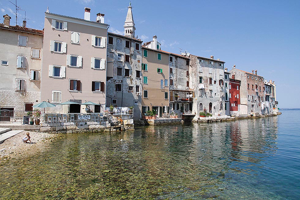 Gamlebyen klamrer seg fast på en odde ute i havet, og fyller stadig mer av horisonten etterhvert som vi nærmer oss. Dette må være en av Adriaterhavets mest sjarmerende byer, hvor himmel og hav konkurrerer om de mest intense blå- og turkisfarger.