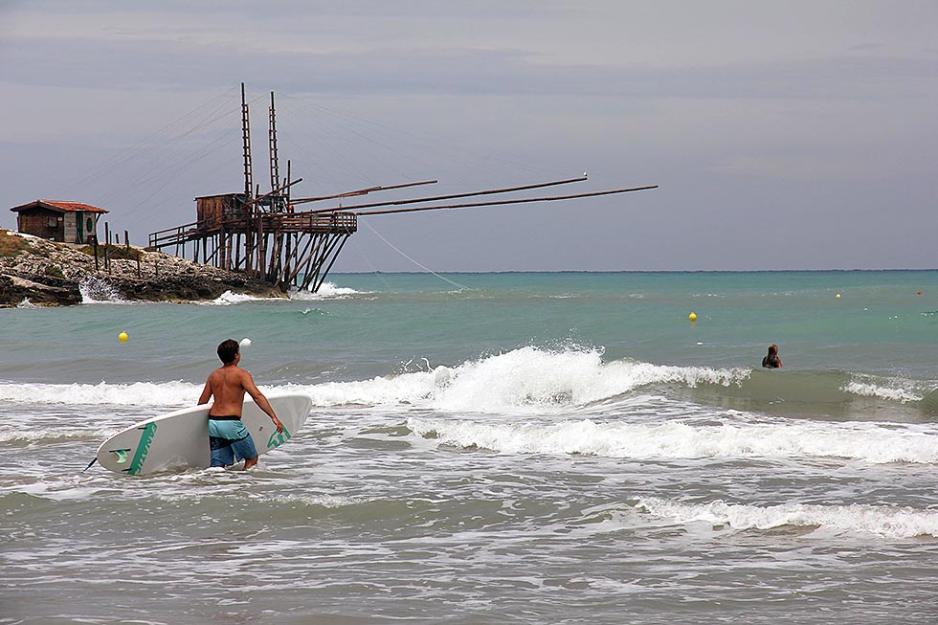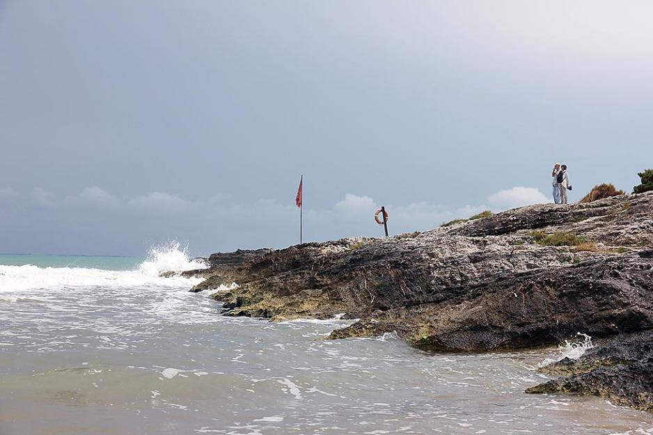 Dette er en camping hvor arealet er godt utnyttet, for å si det mildt. Plassen vi får tildelt er liten, men hva gjør vel det når vi får rigget oss til med utsikt og havet bare 50 meter unna? Været viser seg i tillegg fra sin beste side. Dette er et stabilt solrikt område, og havet ligger flatt. Neste dag kommer det likevel et kraftig regnskyll. Det varer ikke så lenge, men vannet setter dype spor etter seg. Havet fylles raskt opp med surfere og andre som leker seg i bølgene.