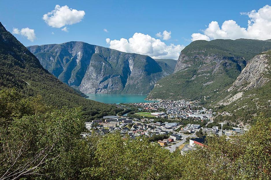 Etter en kjøretur langs Sognefjorden, med noen innlagte fotostopp, ankommer jeg neste destinasjon, Lærdalsøyri. Lærdal ligger midt mellom Oslo og Bergen, og har alltid vært hovedferdselsåre mellom øst og vest. Fra gammelt av var Lærdal en handelsplass, og stedet har historie helt tilbake til middelalderen. Med sin sentrale plassering er Lærdal Ferie- og Fritidspark det mest opplagte overnattingstedet, men her kan det være fullt, erfarte jeg. Det kan lønne seg å sende en forespørsel på forhånd for å sikre seg en plass i de hektiske sommermånedene. Den tyske appen «Stellplatz» er god å ha for å finne alternative bobilplasser. Den viser en detaljert oversikt over hvor det er mulig å overnatte, og om det er noen fasiliteter på stedet. De som bruker appen kan legge ut bilder og kommentarer om sin opplevelse – til glede for de som kjører rundt i samme område på et senere tidspunkt.