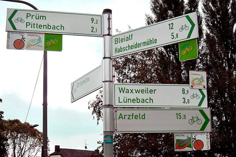 Går du inn på radwanderland.de finner du mye informasjon for syklister i denne delen av Tyskland og inn i Belgia. Velg engelsk språk og du finner mengder av alternative sykkelturer, det er utrolig hvor tilrettelagt det er. Men med for eksempel bobil er dagsturer mest aktuelt om ingen ofrer seg og kommer etter med bilen. To knutepunkter er St. Vith i Belgia og Pronsfeld i Tyskland med sykkelvei i mellom. Fra disse går det traseer i flere retninger, og avstanden mellom dem er rundt 20 kilometer i luftlinje.