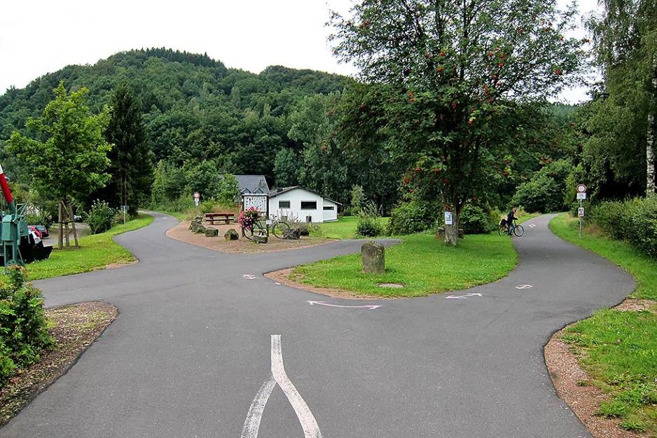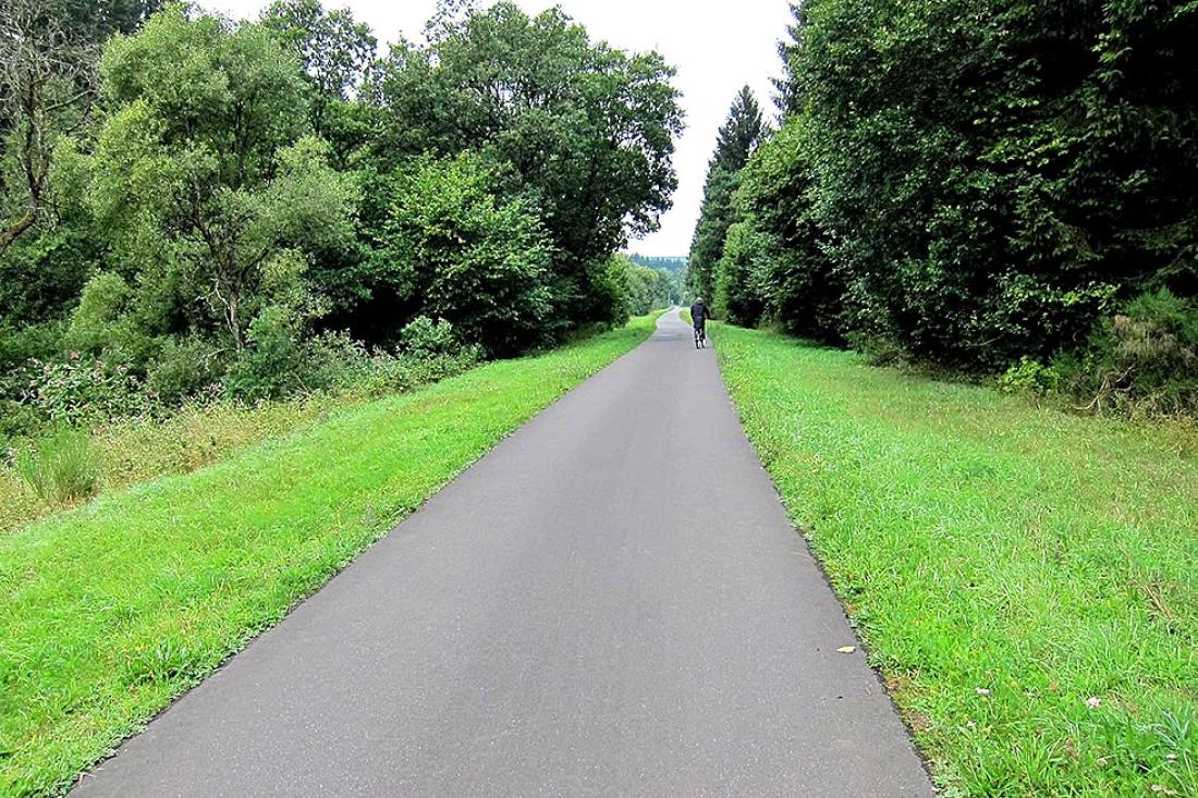 I Ardennene og Eifel er de gamle jernbaneskinnene byttet med sykkelsti.