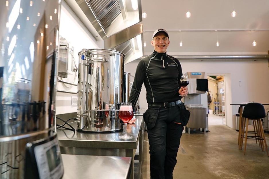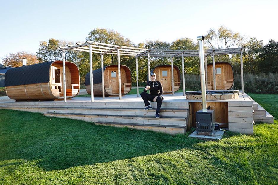 Vi treffer en blid og kaffedrikkende Ken Thøgersen. Han eier og driver Lindebjerggaarden og selskapet Hjemmebryggeren. Han blir ekstra blid når han hører vi kommer fra Norge, og viser oss rundt på hele eiendommen. Her er kreative utleiehytter, stor uteplass, utleierom, oppholdsrom og ikke minst et meget romslig butikklokale, som også brukes i kurssammenheng.