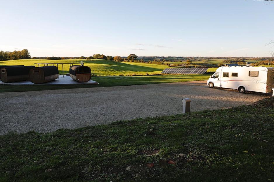 Her er det tømmemuligheter, og strøm (40 DKK) tilgjengelig. Du kan også kjøpe deg adgang til toalett og/eller bad. Men det stopper ikke der, det er også mulig å leie boblebadet eller badstuen. De kreativt utformede utleiehyttene bidrar også til å sette stemningen. En kreativ og meget trivelig plass.