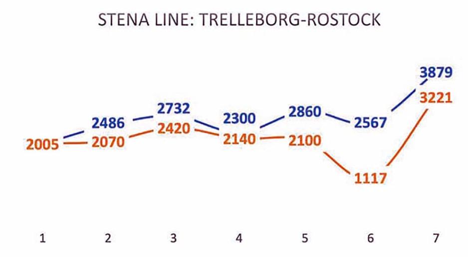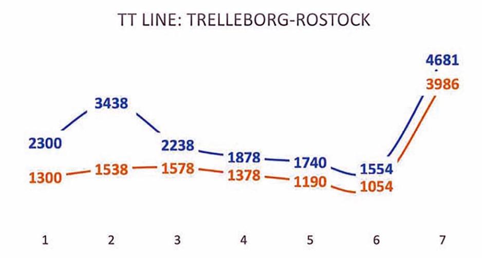 - TT-Line har tre avganger i døgnet med seiletider fra 5,5 timer.
