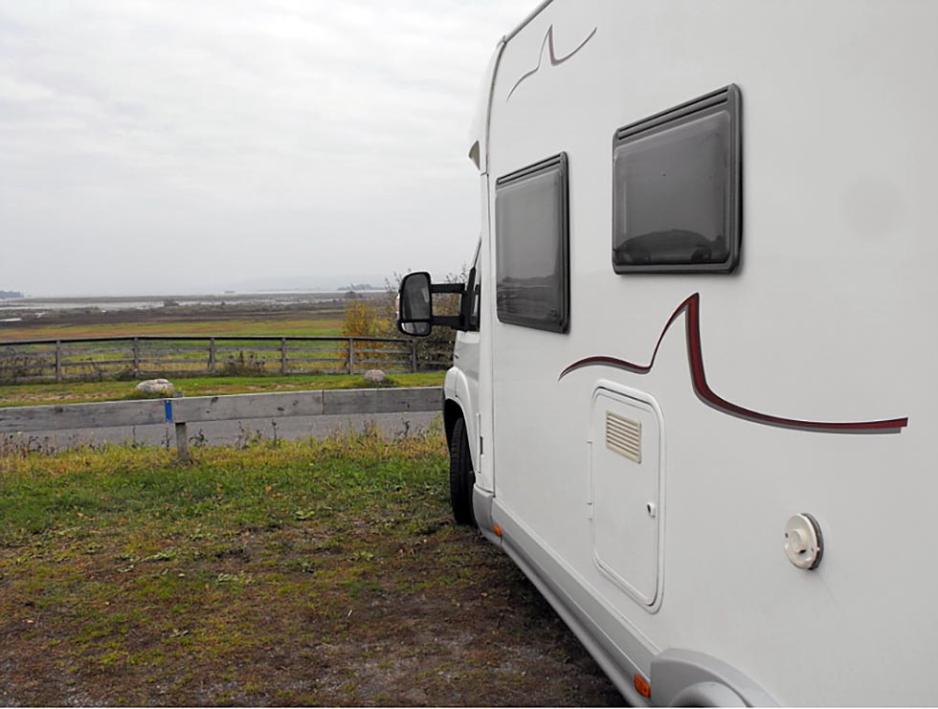 Til tross for at plassen var grei for en overnatting, hadde vi behov for å få tømt tankene i bobilen, noe som ikke er mulig på plassen. Derfor bestemte vi oss for et annet mål på opplevelseslisten. Med et siste blikk ut til sjøen og tranene la vi kursen mot Askersund, men det er en annen historie.