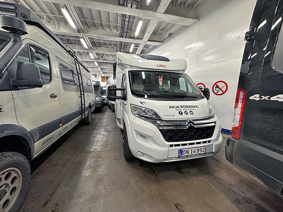 Når du skal med fergen, må du som alltid slå av gassen i bobilen. Det er ingen tilgang til strøm underveis. Men kjøleskapet er heller ikke så viktig da man uansett ikke får ha mat med til Island. Jo, man kan ta med boksmat. Det er også begrensninger for hvor mye alkohol man kan ta med. Jeg anbefaler å lese seg opp på dette før man reiser. Husk også at man ikke kan ha med kjæledyr. De må i karantene, så undersøk dette før avreise.