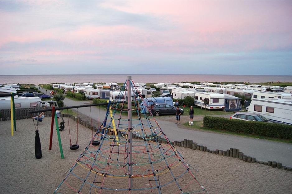 Vi kjente fort at her kom våre behov til å bli mer enn dekket. Plassen har en storslått utsikt mot Kattegat, en nydelig hvit, ren og langgrunn sandstrand maks 150 meter unna, i tillegg til basseng med sklie. Plassen har en svært innholdsrik kolonialbutikk, her skal det virkelig mye til for at du ikke finner det du leter etter... Og selvfølgelig har de ferske rundstykker hver dag, og "lun" leverpostei fra den lokale slakteren. Det er også en liten kafé her med god mat til en rimelig penge.