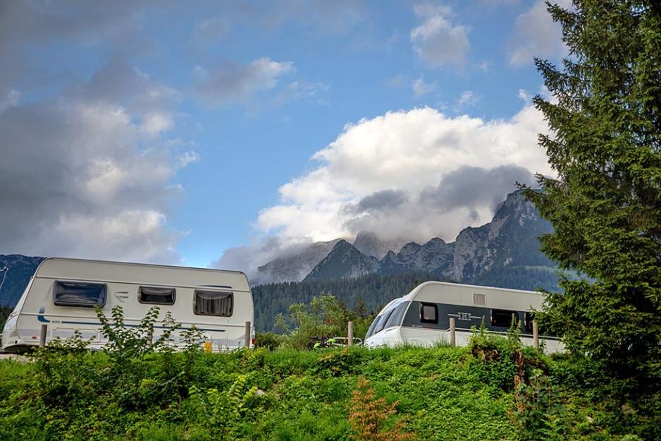 For å oppleve Königssee og området rundt valgte vi å slå oss ned på Campingplatz Grafenlehen (GPS: 47.59527, 12.98662). Selve campingen er helt grei, og hadde de fasilitetene vi var ute etter. Det må sies at det mest attraktive med plassen ikke er campingen i seg selv, men det spennende nærområdet. Noe rimeligere er bobilparkeringen (GPS: 47.59309, 12.98564) som du ser rett før den store parkeringen til Königsee. Adressen hit er Seestraße 2, 83471 Schönau am Königssee.