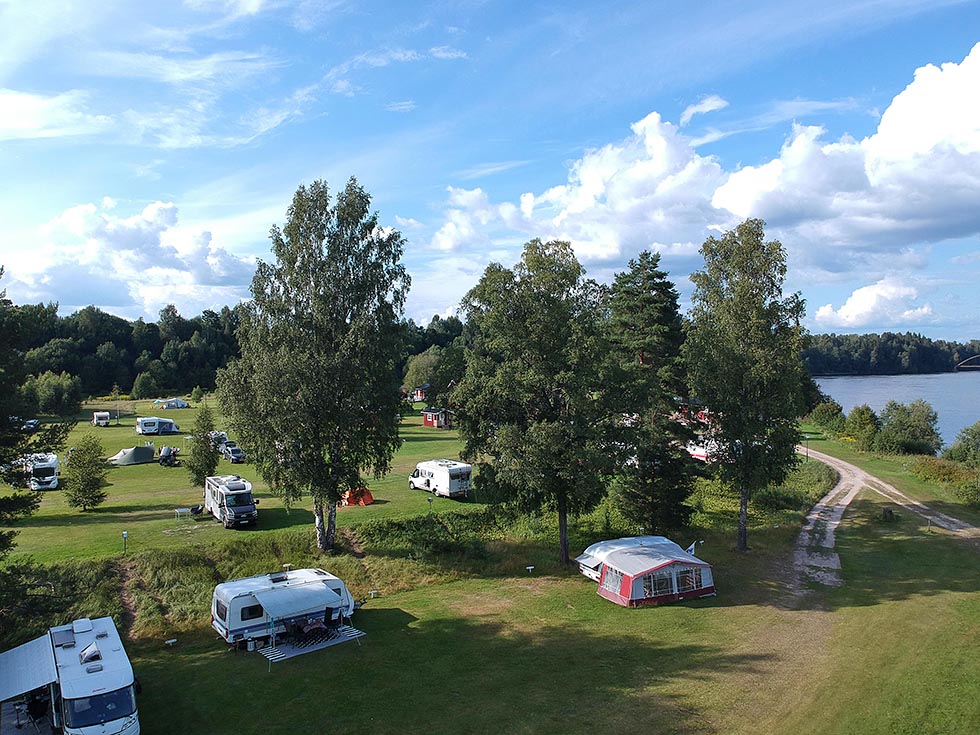 Campingplassen tilbyr også moderne glamping i tre velutstyrte safaritelt, plassert i et rolig område langs Klarälven som flyter stille forbi.