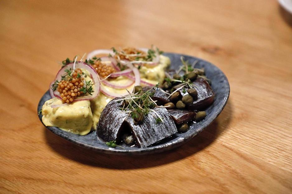 Anker har spesialisert seg på retter fra havet, og ligger rett ved det lokale fiskemottaket. De er gode på silderetter, som er en viktig del av en klassisk dansk julefrokost. Jeg synes den marinerte silden med karrisalat var et av høydepunktene på vår meny. Men det var bare en forsiktig første start på en rekke retter med mange spennende smaker: Kryddersilden var klassisk, og den gravede laksen av ypperste klasse. Å så få en panert flyndrefilet etterfulgt av egg og reker, forklarer sikkert at flere av oss begynte så smått å bli mette. Så kom kjøttet, først varm leverpostei og så en herlig ribbestek med tilbehør. Det var så vidt vi orket desserten, selv om riskremen var skikkelig god. Prisen på 379 DKK er meget fornuftig, for dette var en fest av et måltid. Vi klarte oss med brus og vann, men mange ville sikkert supplert måltidet med øl, vin og snaps, da koster tilsvarende meny 999 danske kroner.