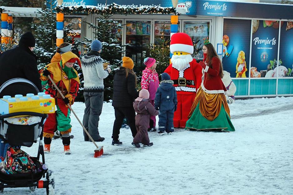 Rundt omkring i parken går det flotte prinsesser, Legofigurer og joviale nisser, i reneste Disney-stil. De stilelr villig opp på fotografering med både barn og voksne. Rett innenfor inngangen finner du et ti meter høyt Duplo-tre. Skikkelig stilig med lys, pynt og det hele.