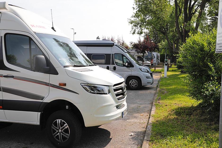 Det første som møter deg, er en fin bobilparkering rett ved sentrum. Her er det god plass og godt tilrettelagt. Denne solfylte juni-dagen vi besøkte byen var det masse ledig plass. Herfra er det kun en kort spasertur inn til bykjernen, og du trenger ikke gå langt før du skjønner hvorfor Valvasone er på den prestisjetunge listen «Italias vakreste landsbyer» (Borghi più belli d'Italia).