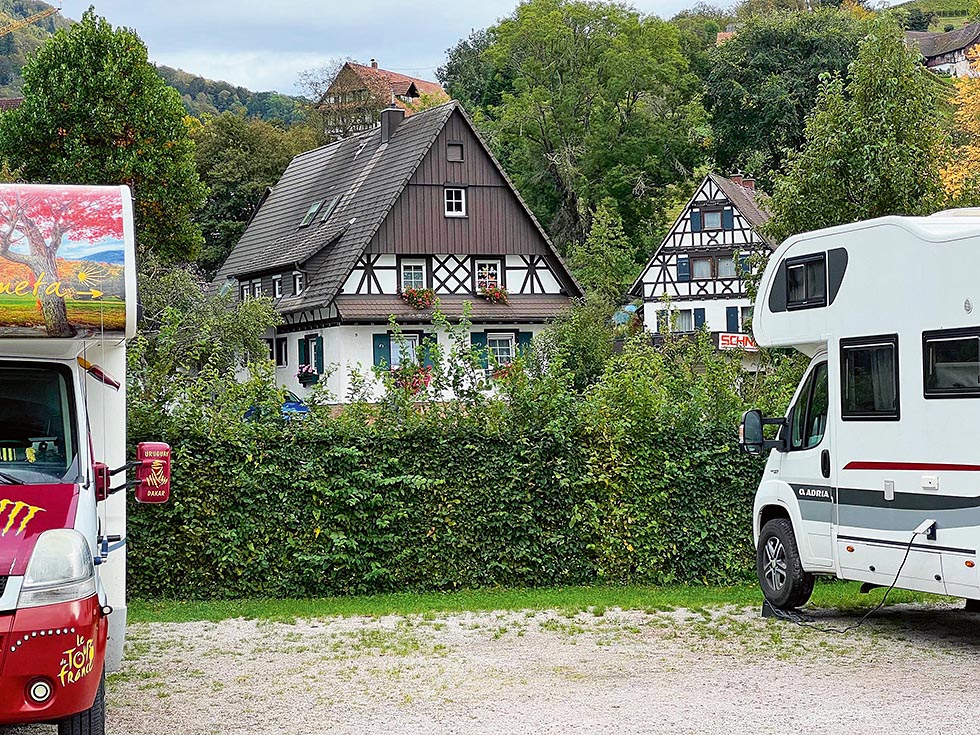 Jeg er sikker på at det er hyggelig å slå seg ned på bobilparkeringen i Sasbachwalden hele året. Men å komme dit i vinhøstingen, som vi gjorde, gir en ekstra dimensjon til oppholdet.