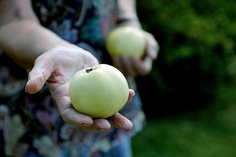 – Her er alt økologisk, og jeg dyrker epler, aronian, squash, tomater og masse annet, forteller Berith Olaussen. Hun driver Nöddö Musteri, som spesialiserer seg på helt ren eplejuice fra flere eplesorter, og gjerne med ulike naturlige smakssammensetninger.