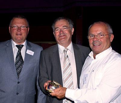Fra prisutdelingen: Avdelingsleder Trygve Hestaas, leder og eier av Rapido konsernet Pierre Rousseau, og eier av Reime og Lode Nikolai Reime