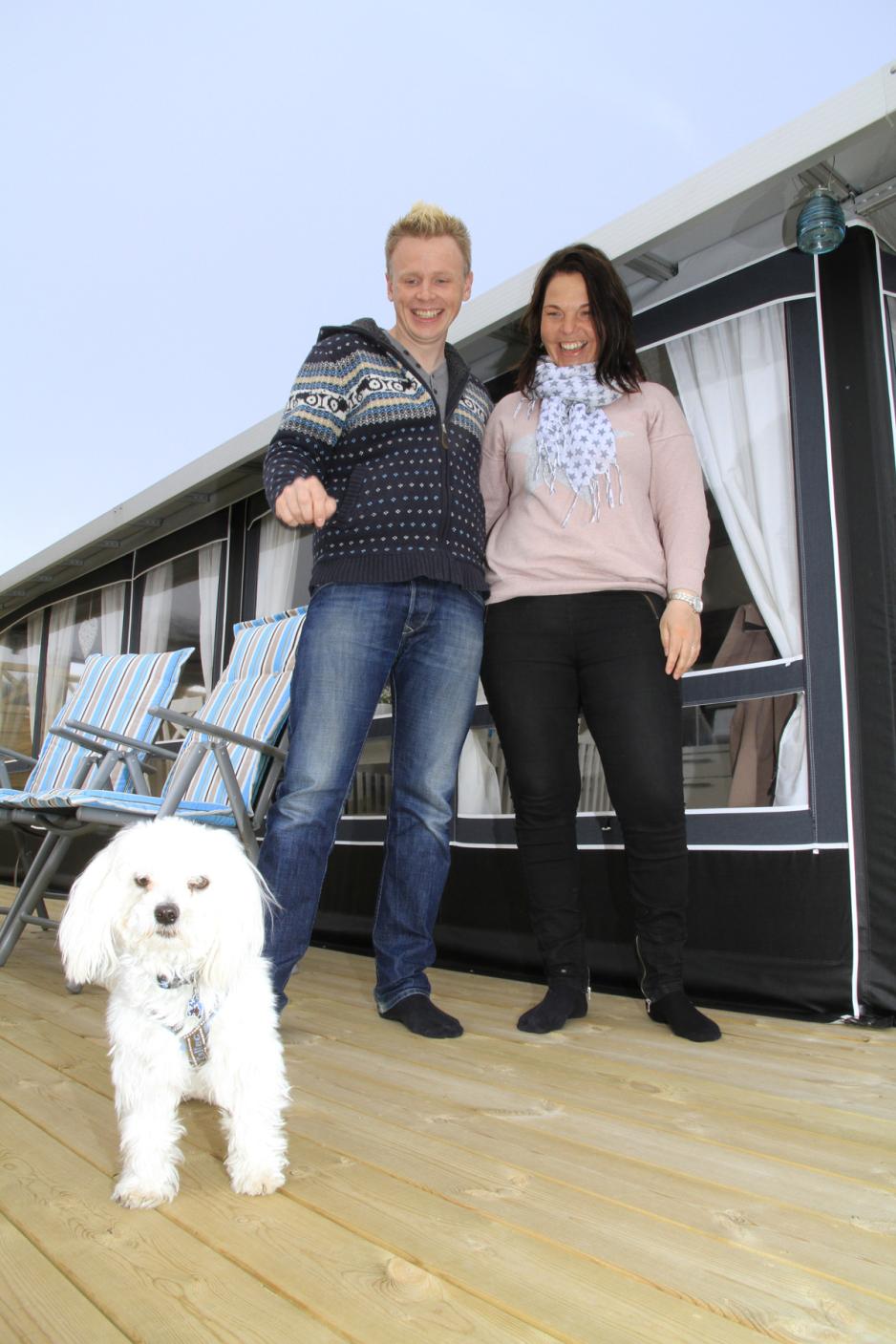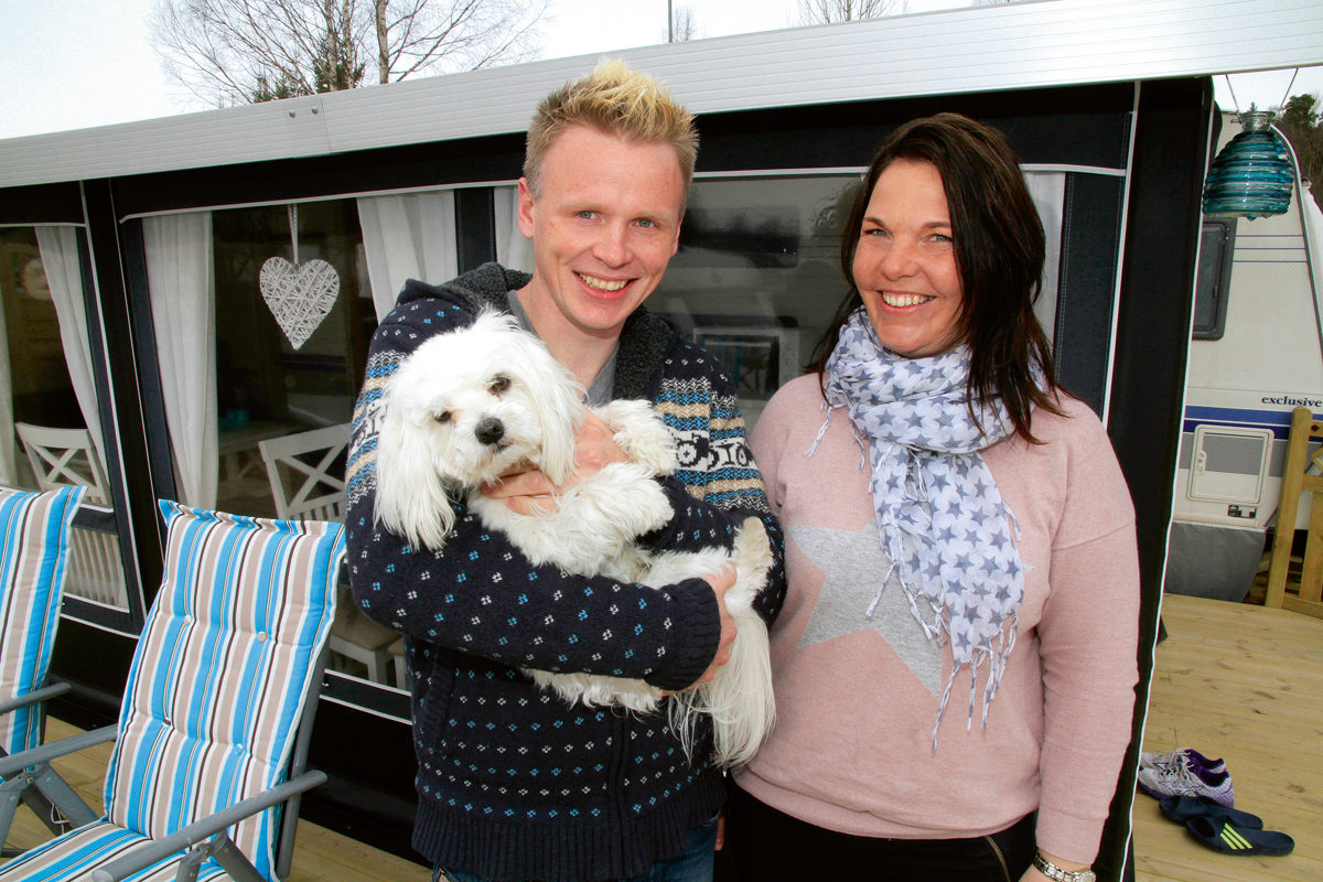Carina Arnesen (35) og Tor-Arne Teig (31) er ferske som campingvogneiere. De brukte god tid på å finne en brukt vogn som Carina kunne godkjenne interiøret på. Populære plasser ved sjøen i Strømstad ble sjekket ut, men konklusjonen ble at det var uforholdsmessig dyrt. Men på den femstjerners campingplassen Sommarvik ved Årjäng fant de roen. – Prisen på å ligge fast her er halvparten av tilsvarende plass ved kysten, forteller Tor-Arne. Fjorårssesongen var en test, og da ble den gamle plattingen som var på plassen benyttet. Samboerparet trivdes, plassen ble godkjent og i løpet av vintersesongen ble det snekret ny platting. Ikke bare det, nytt helårs fortelt som er fylt med skuffer og innredning som vil gjøre et gjennomsnittlig norsk kjøkken til skamme, er også på plass. De valgte helårsfortelt av den enkle grunn at de ønsket å spare tid og krefter. Skinnsofa i hjørnet, teppe på gulvet og en gjennomført stil som vitner om at lite er overlatt til tilfeldighetene. Vogna, forteltet og uteplassen kunne sklidd inn på hvilken som helst utstillingsmesse. – Vi begynte med vanlig fortelt, men ønsket å bruke vogna som en hytte. Nå har vi ferdig permanent oppredde senger, permanent kjøkken i forteltet og det beste ved alt er at det kan stå permanent hele året, sier Tor-Arne. Han er ikke i tvil om at prisforskjellen mellom vanlig fortelt og helårstelt rettferdiggjøres av fordelene. – Vi slipper å bekymre oss for når det første snøfallet kommer, vi sparer tid på å rigge ned på høsten og klargjøring på våren, og det betyr mye for at vi skal føle at dette er et skikkelig feriested for oss, forteller de.
